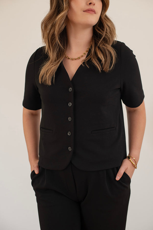 Designed to pair seamlessly with the matching Scuba Crepe Trouser, this vest brings effortless polish to any wardrobe. Featuring functional buttons and welt pockets, it’s crafted from a soft, stretchy knit scuba fabric with a refined crepe finish for a...