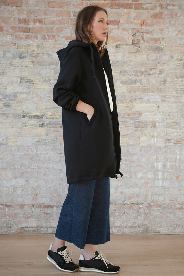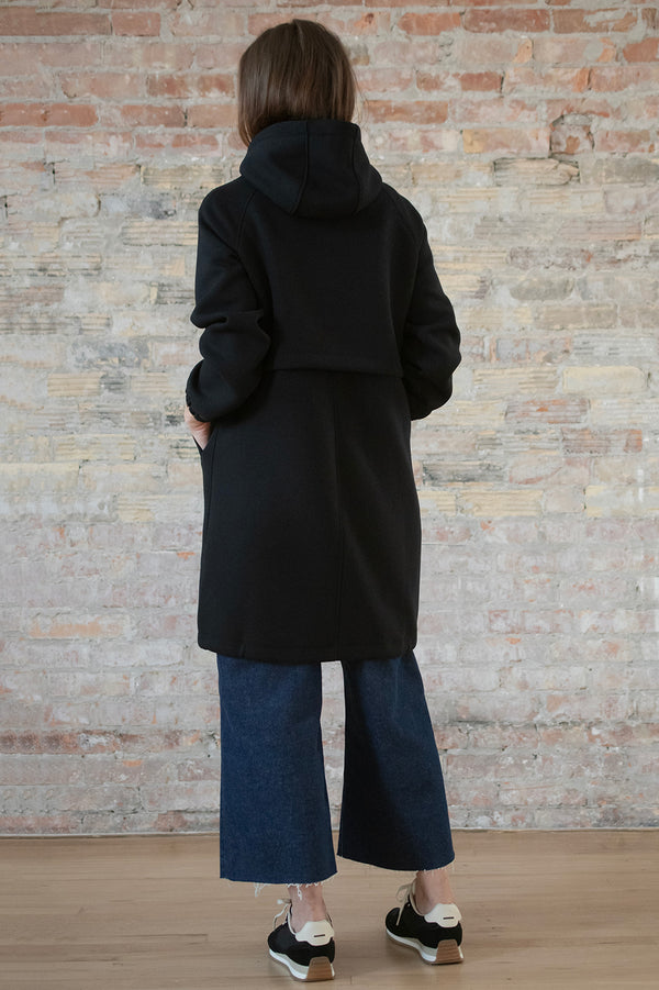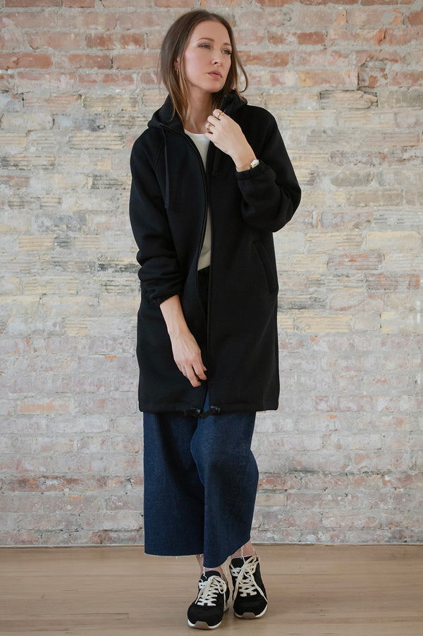 Fabric Content - Water repellent 28%Rayon, 67%Polyester, 5%Spandex Deep Back yoke, Drawstring waist controlled  hand/gentle  wash cold; hang to dry. 100% Made in Canada Fit is oversized, size down for more of a slimmer fit.