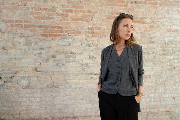 Designed to complement the matching heathered knit trousers, this short-sleeve vest offers a streamlined, polished layer. Featuring functional buttons and welt pockets, it’s crafted from the same soft, stretchy fabric for a cohesive and comfortable look—wear it solo or layered...