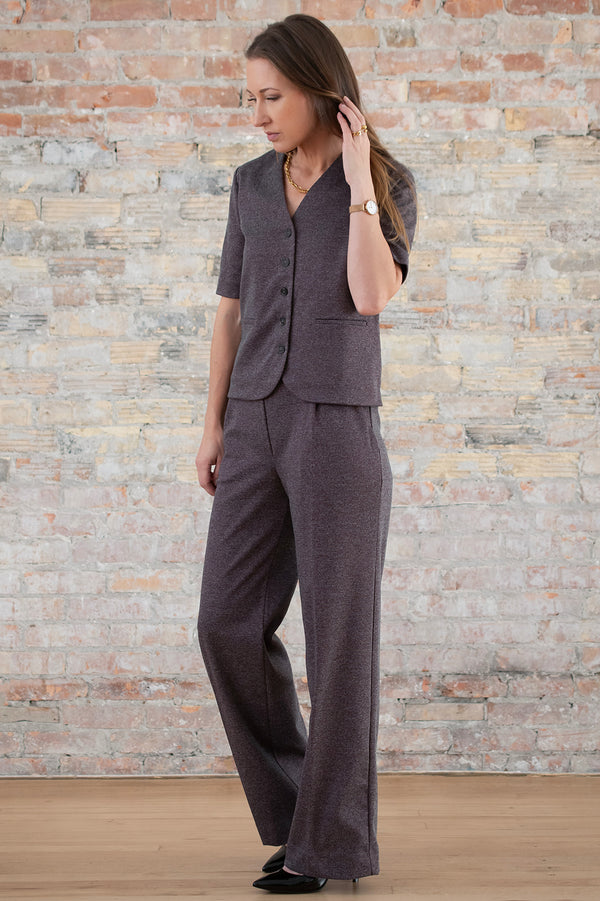Designed to complement the matching heathered knit trousers, this short-sleeve vest offers a streamlined, polished layer. Featuring functional buttons and welt pockets, it’s crafted from the same soft, stretchy fabric for a cohesive and comfortable look—wear it solo or layered...