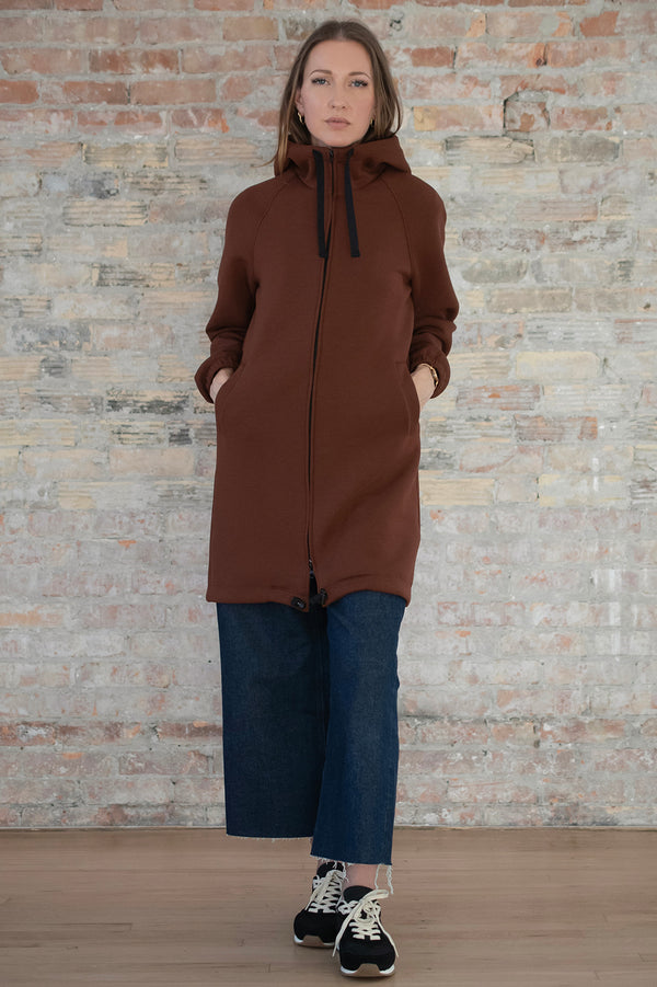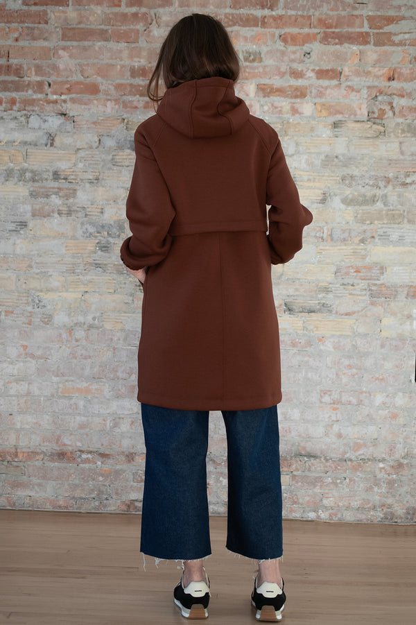 Fabric Content - Water repellent 28%Rayon, 67%Polyester, 5%Spandex Deep Back yoke, Drawstring waist controlled  hand/gentle  wash cold; hang to dry. 100% Made in Canada Fit is oversized, size down for more of a slimmer fit.